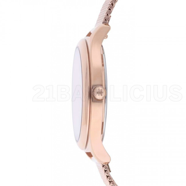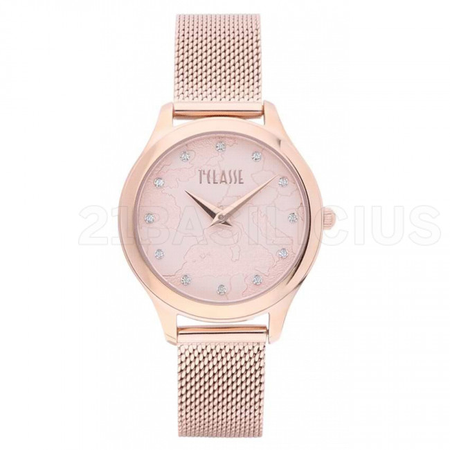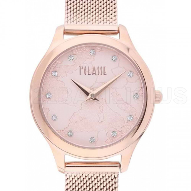 CASSA: in acciaio inossidabile placcatura oro rosa di forma rotonda, diametro 32 mm, spessore 7 mm, lunetta personalizzata e stilizzata Alviero Martini 1ª Classe, corona lucida chiusa a pressione, vetro minerale, logo 1ª Classe inciso.