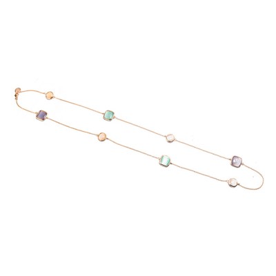 COLLANA LUNGA MADÌ COLLEZIONE LAGUNA CON PIETRE VERDE SALMONE ,VIOLET E GHIACCIO IN ARGENTO ROSÈ