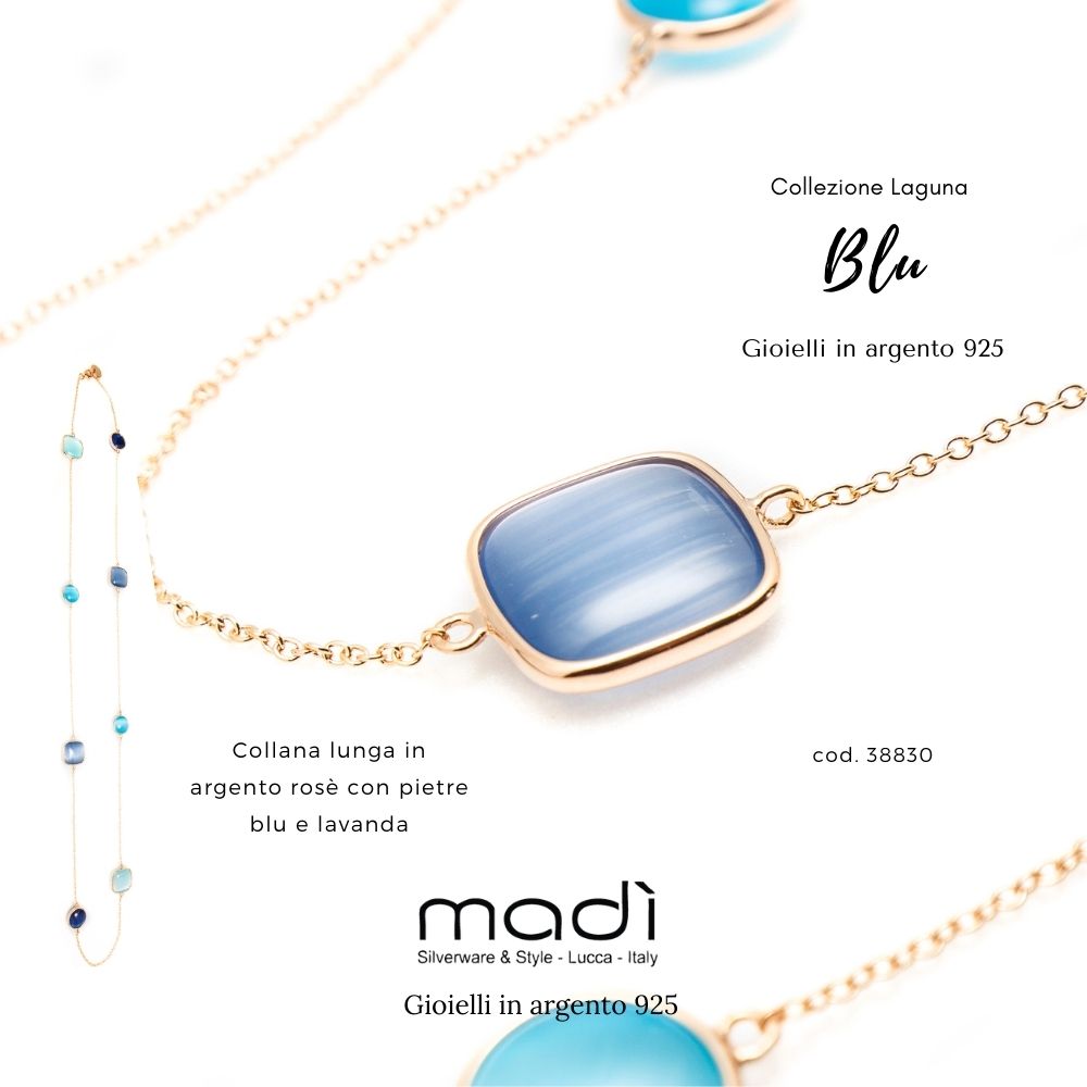 COLLANA MADÌ COLLEZIONE LAGUNA BLU A CHANEL LUNGA IN ARGENTO ROSA CON QUARZI IDROTERMALI LUNG.880MM