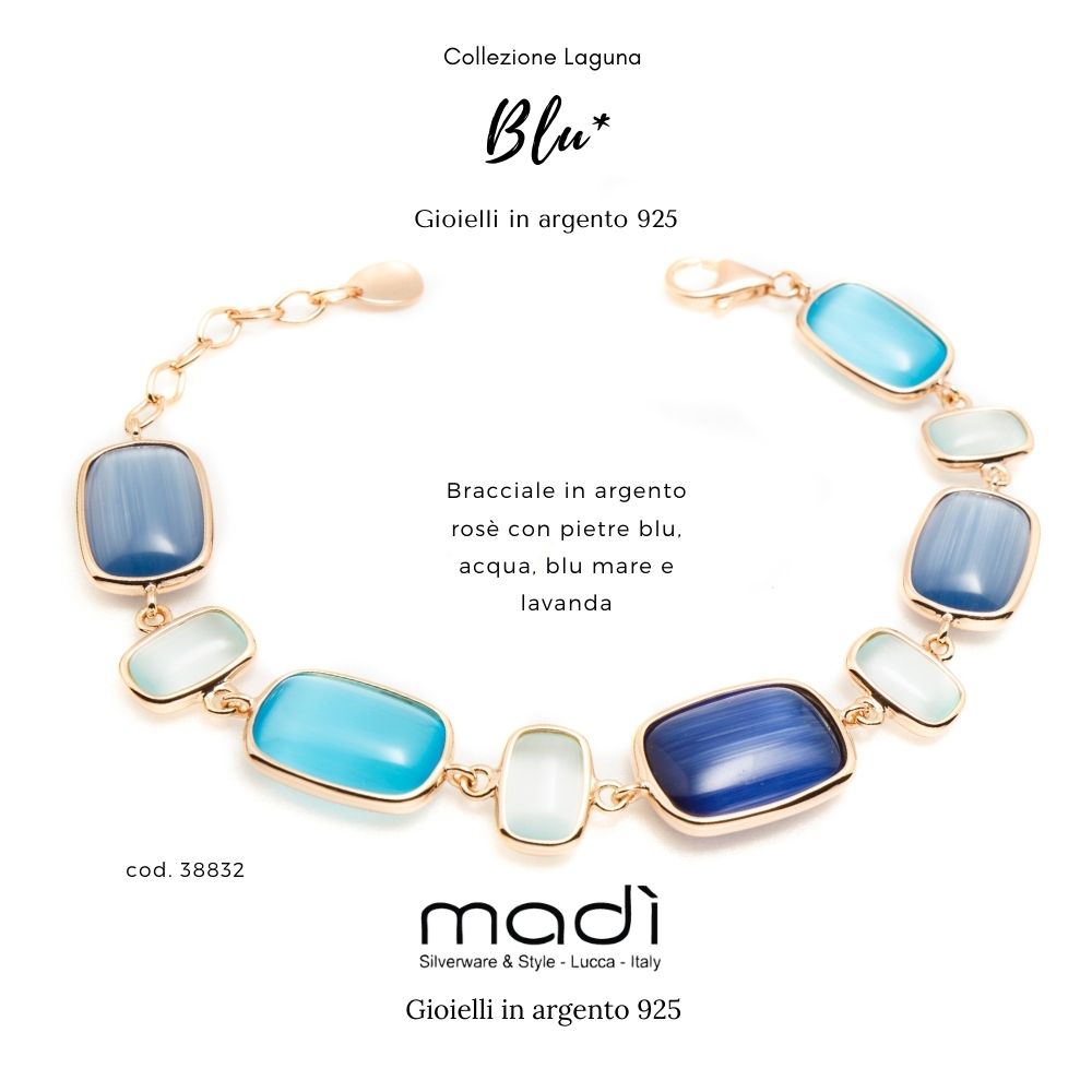 BRACCIALE MADÌ COLLEZIONE LAGUNA BLU IN ARGENTO 925 CON PLACATURA ROSÈE QUARZI IDROTERMALI BLU