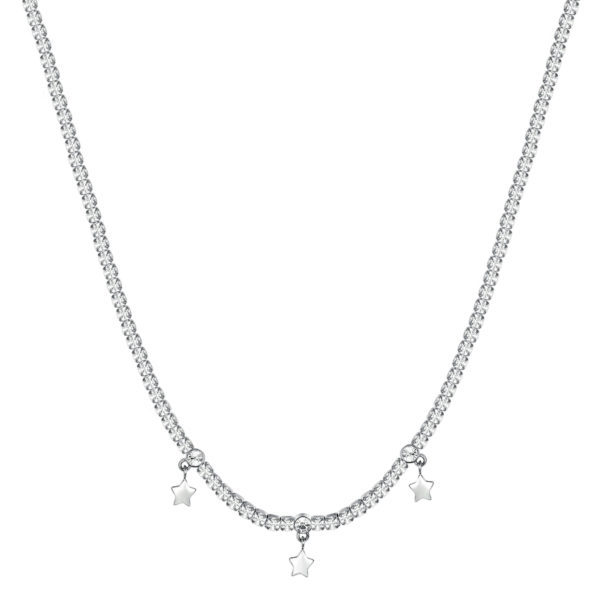 Collana tennis girocollo in acciaio 304L con cubic zirconia white e cristalli crystal con pendenti a forma di stella.