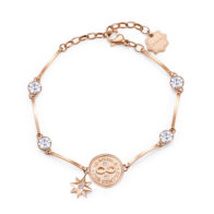 Bracciale in acciaio 316L e finitura oro rosa con infinito e pendente a forma di rosa dei venti e cristalli crystal.