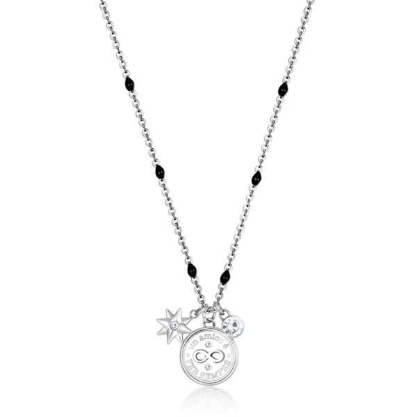 Collana in acciaio 316L con pendente con infinito e a forma di stella polare con cristalli.