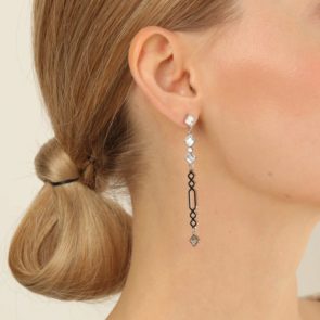 Orecchini highway pendenti in acciaio 316L con dettagli square chain e cristalli baguette swarovski.