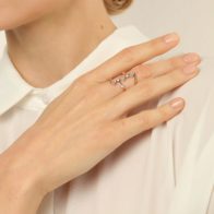 Anello double loop a fascia in acciaio 316L e finitura oro rosa con cristalli round e baguette swarovski.