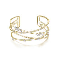 Bracciale rigido in ottone rodiato e galvanica oro con zirconi bianchi e cristalli Swarovski�Elements transmission.