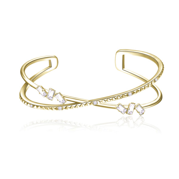 Bracciale rigido in ottone rodiato e galvanica oro con zirconi bianchi e cristalli Swarovski�Elements transmission.