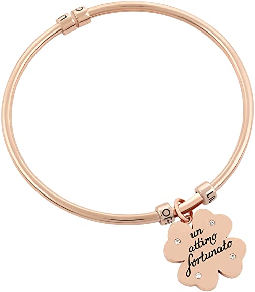 BR LIU JO IN ACCIAIO GOLD ROSE PENDENTE QUADRIFOGLIO INCISIONE SMALTO NERO